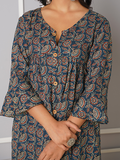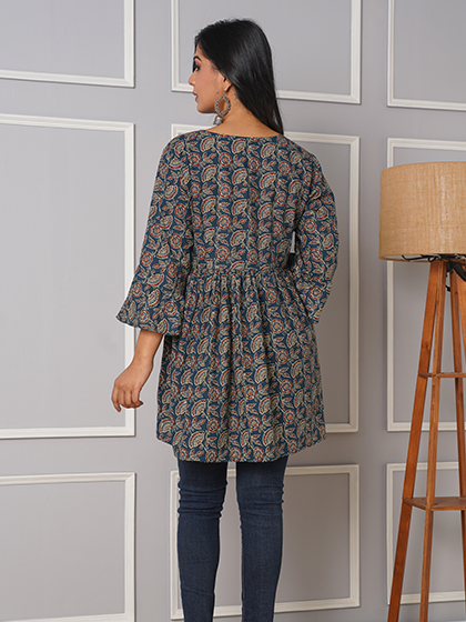 Blue Leaf Printed Hand Block Printed Cotton Top