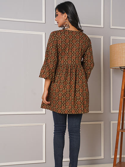 Be the first to review “Brown Cotton Hand Block Printed Top”