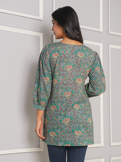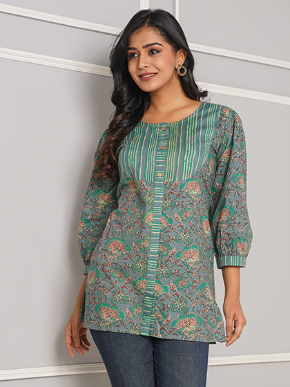 Elevate your wardrobe with this Leaf Green Mix Cotton Hand Block Printed Top, a perfect blend of style and comfort. Made from premium-quality mix cotton, this top features a refreshing leaf green hue adorned with intricate hand block prints, showcasing traditional craftsmanship. The breathable fabric and relaxed fit ensure all-day ease, making it ideal for casual outings, work, or leisure. Lightweight and versatile, it pairs seamlessly with jeans, skirts, or trousers, offering endless styling possibilities. Easy to maintain and effortlessly chic, this top is a must-have addition to your collection, combining timeless elegance with everyday practicality.