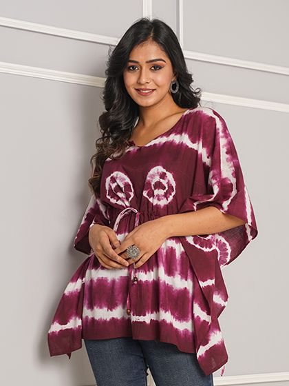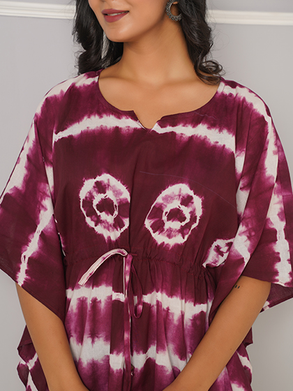 Embrace effortless style and comfort with this Tie-Dye Pure Cotton Kaftan, a vibrant addition to your wardrobe. Crafted from breathable, lightweight cotton, this kaftan features a unique tie-dye design, blending traditional artistry with modern trends. Its flowy silhouette ensures a relaxed fit, while the adjustable drawstring waist flatters all body types. Perfect for lounging, beach outings, or casual gatherings, it offers versatility and elegance in equal measure. The soft fabric is gentle on the skin, providing all-day comfort. Easy to style and maintain, this kaftan is the ideal choice for anyone seeking a blend of bohemian chic and cozy charm.